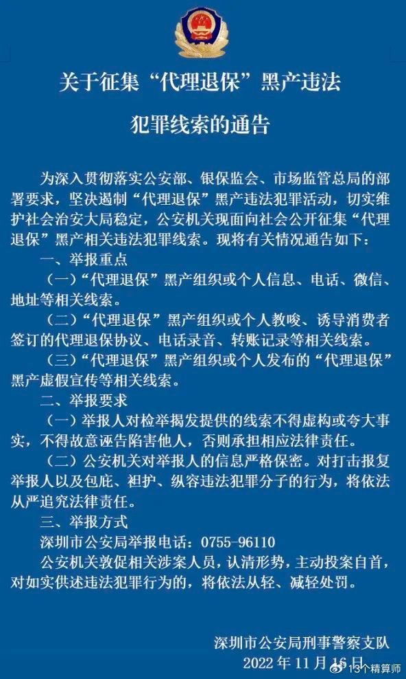 期间,江西、湖北等地,警方还公开征集“代理退保”黑产违法犯罪线索。