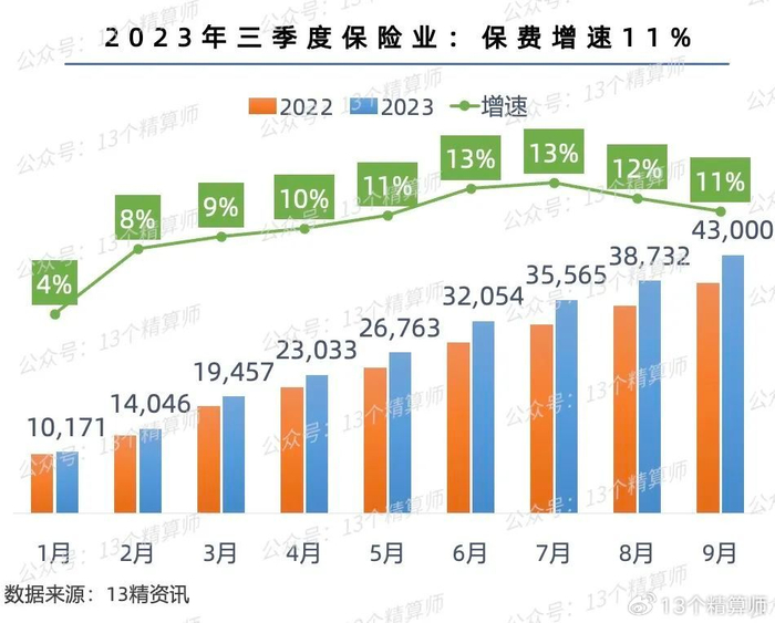 1.2023前三季度的保险业:保费4.3万亿,增长11%!