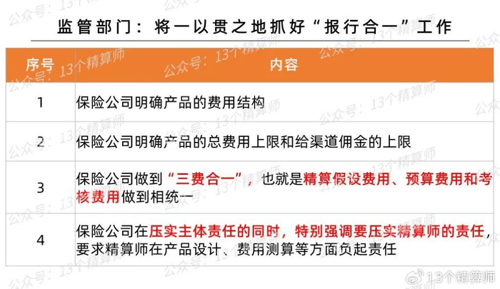除此之外,监管还将要求险企做到“三费合一”,并要求险企压实主体责任和总精算师责任。