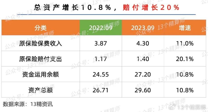 2023年三季度末,行业的保费增速,已经从上半年的13%降至11%。
