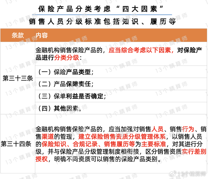 1. 保险产品分类考虑“四大因素”,销售人员分级标准包括知识、履历等...