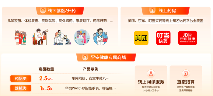 “品质医疗”:打造平安甄选医健服务,通过平安强大的医疗网络、自建陪诊陪护队伍,为客户提供专业就医服务;