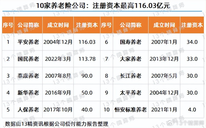 其中,平安养老险注册资本116.03亿元,也是我国注册资本最大的养老险公司。