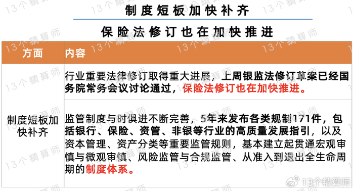 第七,人身险产品费用分摊指引、资产负债管理、保险法等系列新规,有望陆续落地。