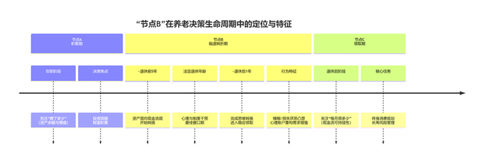 本文所称的“节点B”,是以法定退休年龄为中心,通常涵盖退休前约数年(如5年)至退休后初期(如1年)的一段时间。在积累期(节点A),个体的养老决策更多围绕账户余额与投资回报展开;而在领取期(节点C),关注重点则转向“每月能领多少、能领多久”。节点B恰恰处于这两种认知模式的切换区间,是资产思维向现金流思维转化的关键过渡阶段。从行为经济学视角看,节点B并非一个简单的时间节点,而是一个心理状态、风险认知与制度选择高度叠合的窗口期。