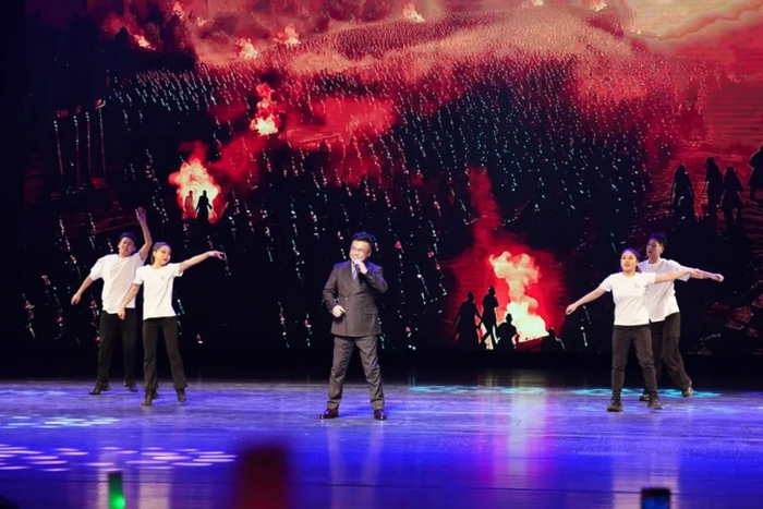 而盛典的高潮之一,则是吻路集团总裁胡国军先生的精彩表演。胡国军总裁亲自登台演唱,深情演绎《搀扶》,磁性嗓音温暖人心。而当他带来激情四溢的表演《着魔》时,全场观众被他的舞台魅力深深吸引。他还倾情献上热力四射的舞蹈《这些杀手不太冷》,以充满张力的动作展现企业家独特的风采与活力。
