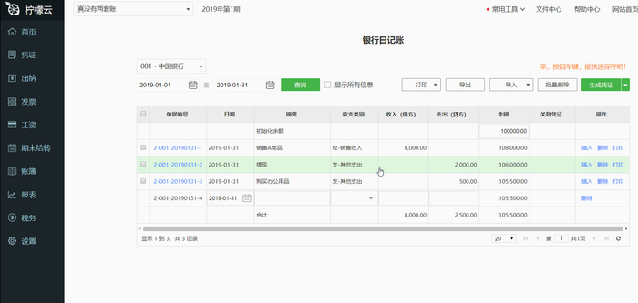 2018年8月 支持出纳模块的日记账自动生成凭证。