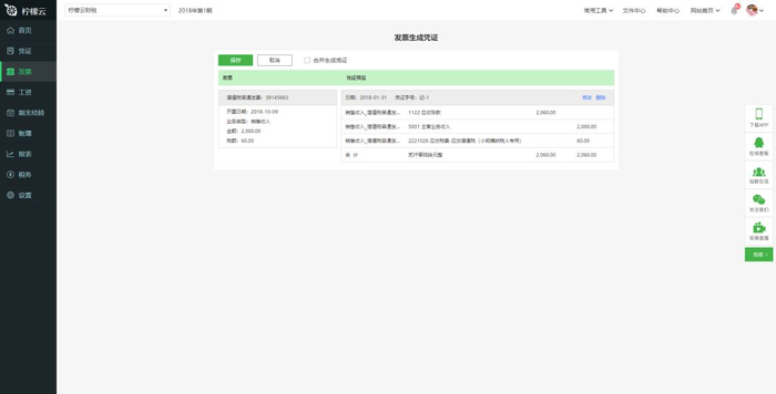①发票导入智能生成凭证,收开票的业务无须手工录入。