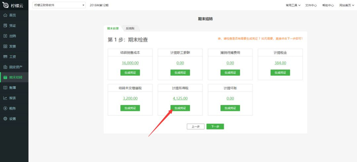 ⑤越来越省心的期末结转,按部就班,不会忘记每一个计提、结转,自动生成凭证。