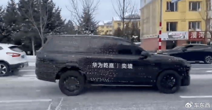 当前测试车辆仍披有严密伪装,车身侧面“华为乾崑|奕境”的标识极为醒目,并且仍可窥见部分设计思路。