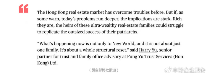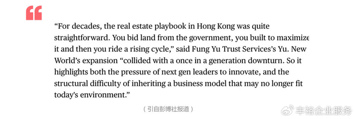 丰裕信托资深合伙人 余亮恒 先生 受邀接受该报道专访,并在文中被引用指出:“香港旧有的『投地—兴建—坐享升值』地产模式已走到极限。下一代企业领导者面对的不仅是市场周期,更是结构性与治理性的考验。”