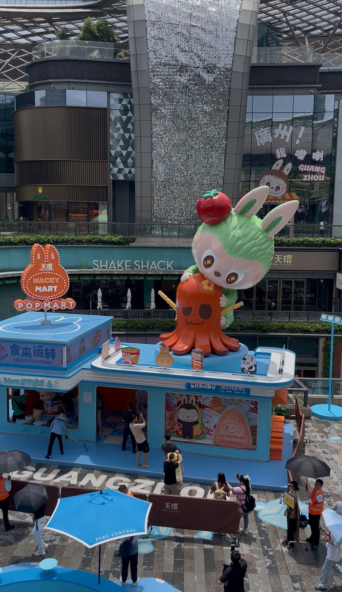 6月13日,广州气象台挂起了雷雨大风黄色预警,但这并未阻挡人们和“顶流明星”LABUBU见面的热情。当天,泡泡玛特THE MONSTERS(LABUBU为该IP家族成员)“怪味便利店”系列快闪店在上海、北京、广州与成都四地同时开业。广州的快闪店位于天环广场B2层室内中庭。