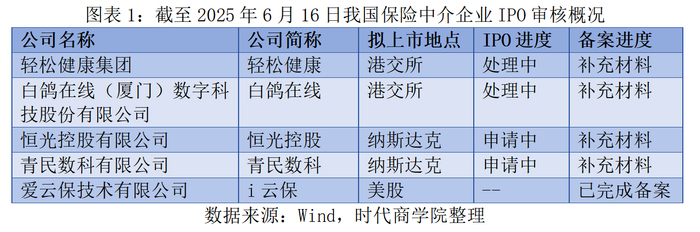 据不完全统计,截至2025年6月16日,我国尚有5家保险中介企业处于港股或美股的IPO审核阶段。