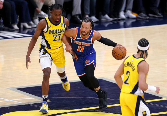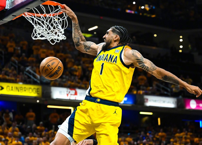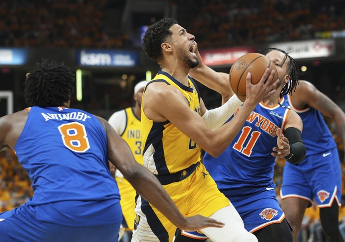 卡莱尔照做,步行者挑战成功,唐斯进攻犯规!这也是比赛第一个转折点,内史密斯高抛,托平放篮+空接砸扣,布伦森连续打铁,哈里伯顿抢断反击扣杀,步行者瞬间拉开20分分差!后半段阿努诺比内突外投,布里奇斯命中压哨三分,半场结束时,尼克斯追到45-58。不过尼克斯最大隐患是布伦森早早四犯,状态并不好。进入下半场,阿努诺比继续扔三分,哈里伯顿和内史密斯内外开花,危急时刻,又是阿努诺比外线轰炸,布里奇斯也连续上分。中段麦克布莱德连续单打+强投三分,分差回到个位数!
