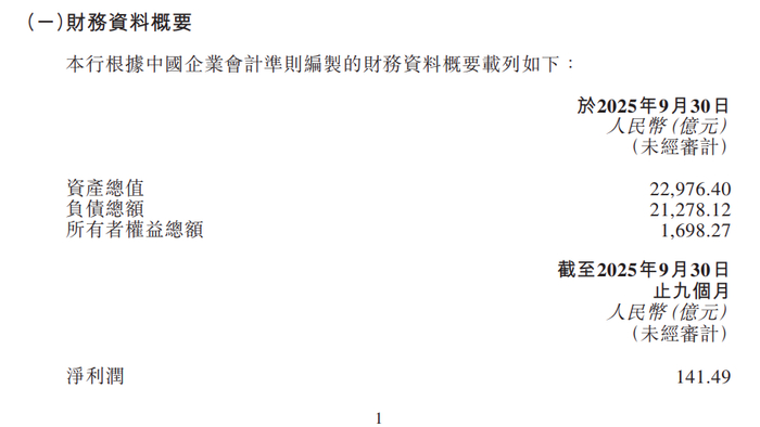 截至9月末,该行净利润为141.49亿元;资本充足率为12.75%,一级资本充足率为11.10%,核心一级资本充足率为9.62%,满足相关监管要求。