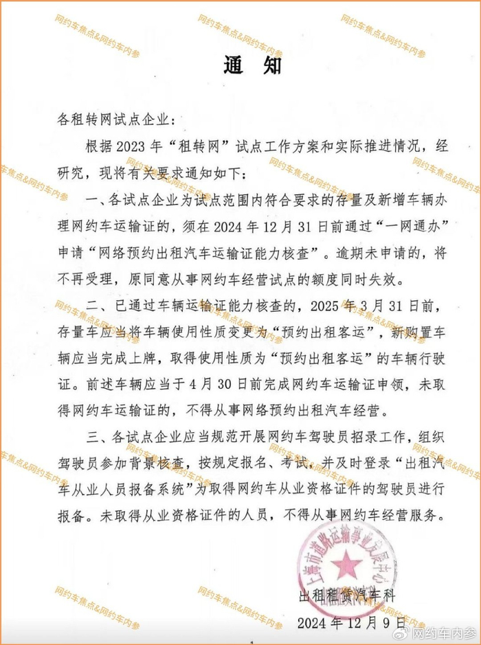 12月9日,上海交通主管部门向租转网试点公司发布通知。