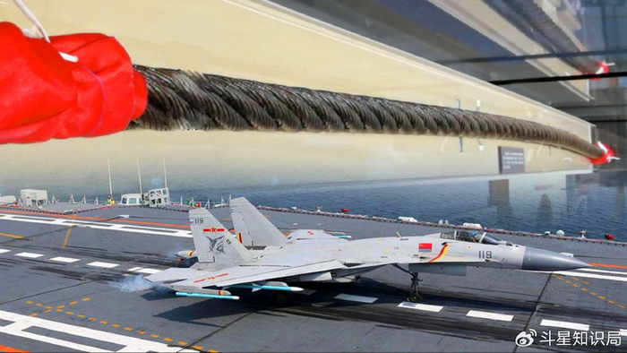 航母阻拦索,又称阻拦索,顾名思义,就是用来拦住舰载机的装置。现代阻拦系统由阻拦索、滑轮缓冲装置、液压阻尼器等组成。当战机尾钩勾住钢索,滑轮组立即带动液压油缸,将动能转化为液压油的热能。这个过程中,计算机需在0.1秒内计算出最佳阻尼力,确保战机在100米内完成制动。舰载机在航母上降落时,速度高达200-300公里/小时,而航母甲板长度有限,最长不过300多米,而舰载机陆地降落至少需要1000米跑道,哪怕开足反推,也得500米才能停稳,仅靠飞机自身刹车根本无法在短时间内停下。阻拦索的作用,就是在飞机尾钩挂住钢索的瞬间,通过液压缓冲系统吸收巨大动能,让飞机在2-3秒内安全停稳。