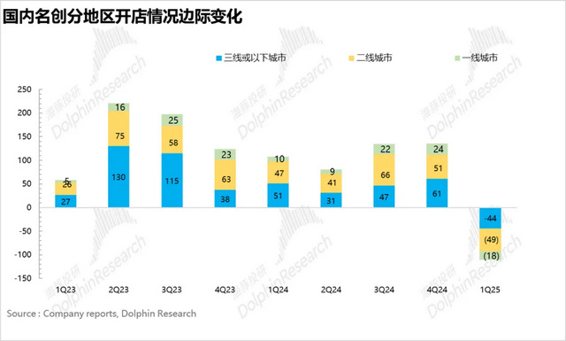 一季度,国内市场净减少了111家门店,这也是名创优品近些年来首次出现总门店数量下滑。从各地开店总数变化幅度来看,整体增速显著放缓,一、二、三线及以下城市分别出现了18、49、44的负增长。