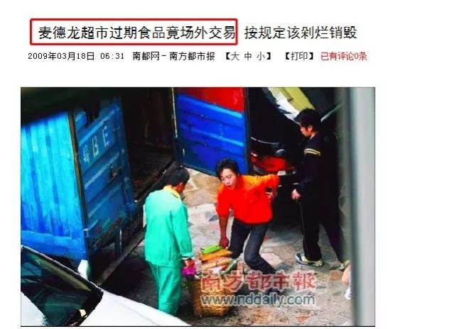 图:早在2009年,南方都市报就爆出麦德龙低价售卖过期商品的丑闻。