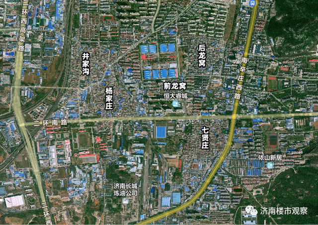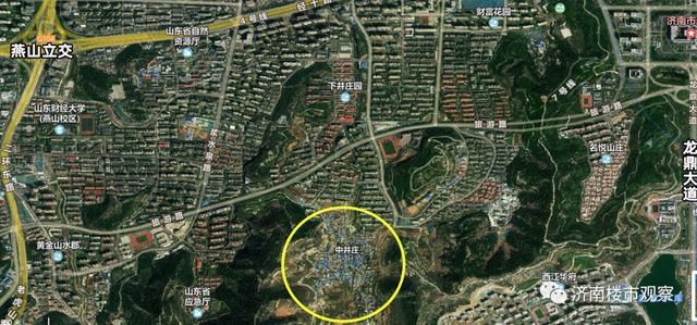 (从姚家庄看华润中心)除了姚家庄,历下区还有一个村庄,占据着绝版的区位,它就是旅游路以南的中井庄。