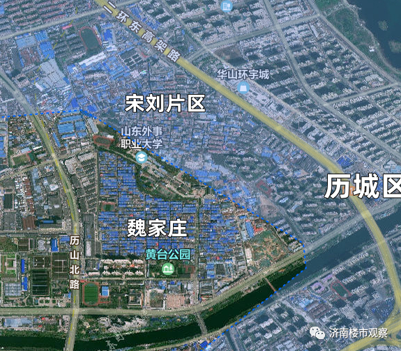 (天桥区,魏家庄卫星图)这个地方是天桥区最东端,紧邻历城区。而且,魏家庄东北就是正在拆迁的历城区宋刘片区。再加上这里临近华山景区、全福商圈、小清河等,城市面貌未来可期。