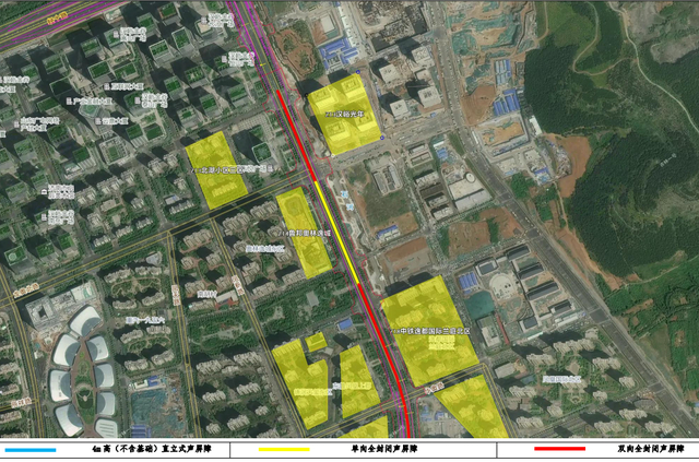 一句话总结:从新东站片区到汉峪片区,它的大部分路段都将是双向或单向全封闭声屏障设计。