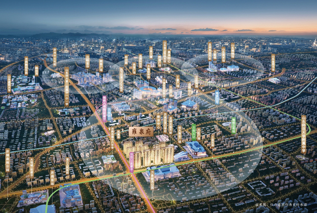 它的建筑兼顾了中式建筑的典雅和现代建筑的品质,外立面选用铝型材、石材、多彩漆搭配中式纹样的高端配置,屋顶搭配双重飞檐,用现代材料与工艺,呈现出盛唐风范。