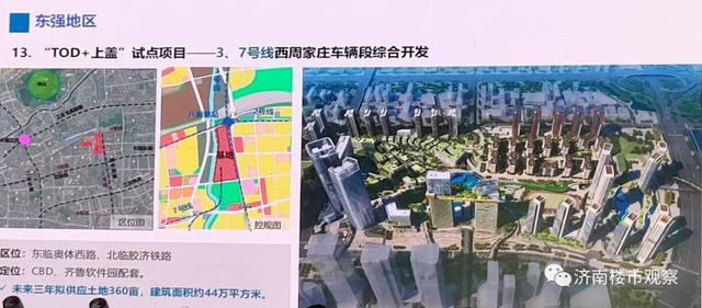 (西周家庄停车场TOD规划)同时,在地铁停车场的上方,规划建设大型TOD综合体,其定位是CBD、齐鲁软件园配套,规划建筑面积可达44万㎡。