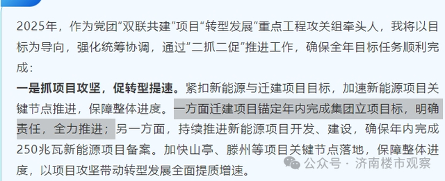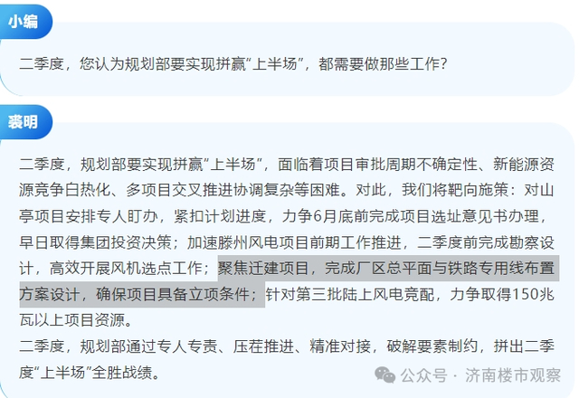 (黄台电厂公众号截图)第三,从全年工作看,迁建项目要在年内完成集团立项目标。
