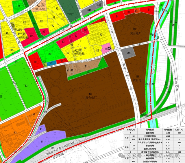 (黄台电厂附近用地规划)但如果黄台电池搬迁,这里的规划必将进行调整,会有更多的服务设施、商务商业甚至是住宅用地,整个片区的城市功能将升级。