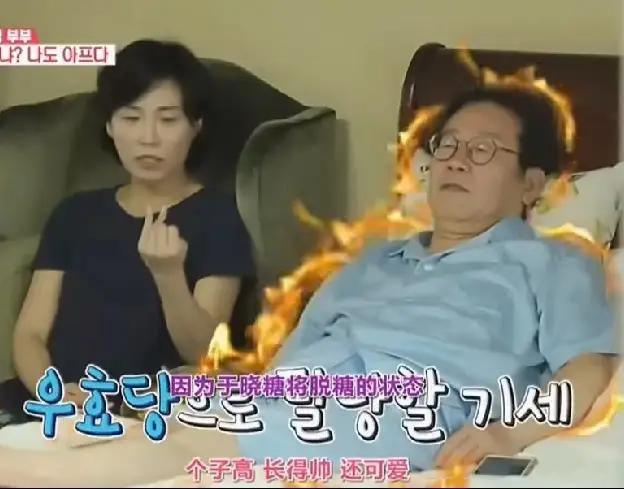 当他费了九牛二虎之力,戴着老花镜颤巍巍地修好一个灯泡,或者是在满头大汗中修好那台闹脾气的空调后,他会像个考了一百分的小学生一样,飞奔到老婆金惠景面前,眼神里写满了“快夸我、快崇拜我”的渴望。