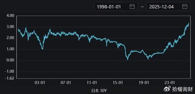 但高市把外交搞砸后,急着在国内搞点名堂出来,弄了个超预期的猛灌水,市场担心通胀进一步上升,反而把日本长期国债搞崩了: