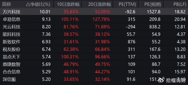 的确过去10天涨幅惊人,但这估值,最低的都50倍了,还有2个亏损股,普遍几百倍的PE。