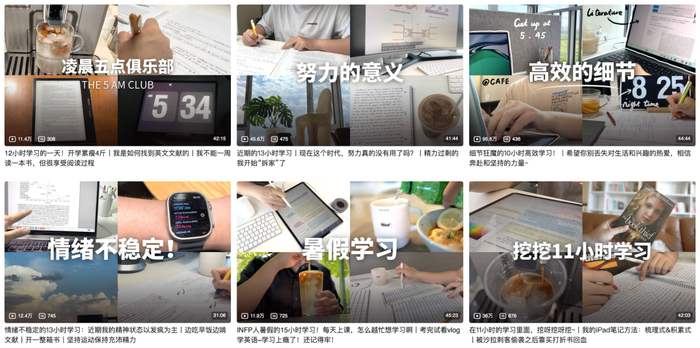 而且学习博主们通常展现出来的都是目标坚定、积极向上的状态,很难在她们的视频中看到焦虑、犹豫、拖延等负面情绪。