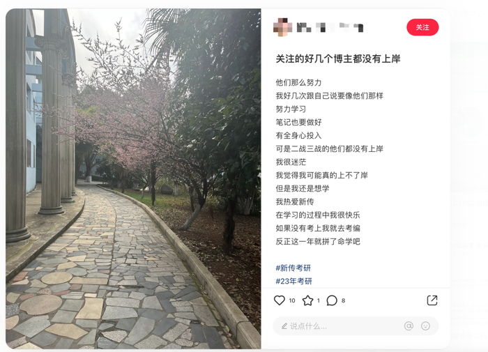 其次,很多以考公考研为目标的学习博主们,虽然经常展示自己密密麻麻的笔记、分享着日复一日的努力,但最后并没有考上。甚至很多博主,持续三年一直都是备考状态,没有任何考试结果的反馈。