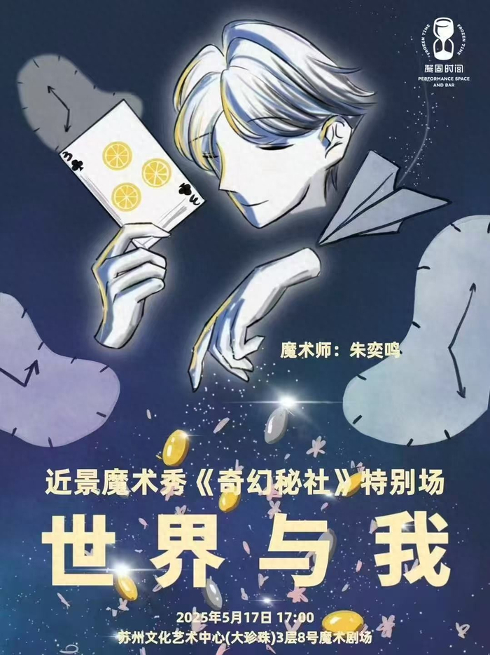 5月17日,宫廷戏法第六代传人、中国小剧场魔术第一人孙峥的徒弟、国际高中UWC学子、魔术师朱奕鸣首次魔术表演《世界与我》在苏州璀璨绽放,犹如一颗划过夜空的流星,为这座千年古城注入魔幻新活力。这场颠覆传统认知的魔术秀,不仅是一场视觉的盛宴,更是一次心灵的奇幻旅途。在苏州文化艺术中心(大珍珠)3层8号魔术剧场这座兼具现代美学与古典韵味的殿堂里,朱奕鸣以其独特的魔术理念,将观众带入一个虚实交织的奇妙世界。