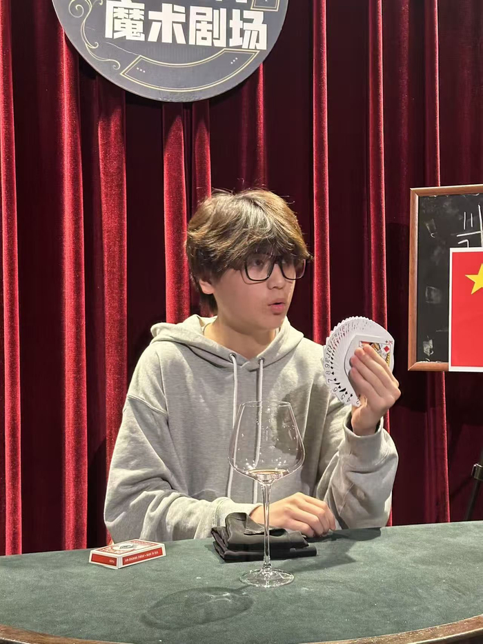 活动中,这位年轻魔术师朱奕鸣用他灵巧如蝶的双手,呈现出一个个精彩的近景魔术,引得观众们阵阵惊呼,在方寸之间演绎着天地乾坤。他没有用华丽的道具,而是选择用最贴近生活的道具——纸飞机、小黑板、扑克牌等,通过从容不迫的演说+手指的灵活变化,就能把魔术技艺展现得淋漓尽致,编织出令人屏息的魔法时刻。他的表演既像一首抒情诗般优雅从容,又如同精密方程式般严谨完美。