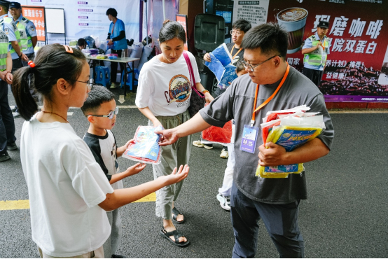 西施音乐节现场为乐迷准备了免费的大麦茶及藿香正气水等防暑物资,为乐迷健康保驾护航。特别值得一提的是,"西施小姐姐"们化身清凉使者,穿梭在舞台前,将一个个"清凉包"送到乐迷手中,在夏日里传递着诸暨特有的热情与关怀。"没想到雨天体验还这么好,工作人员真的很用心!西施音乐节太良心了!"一位乐迷说道。