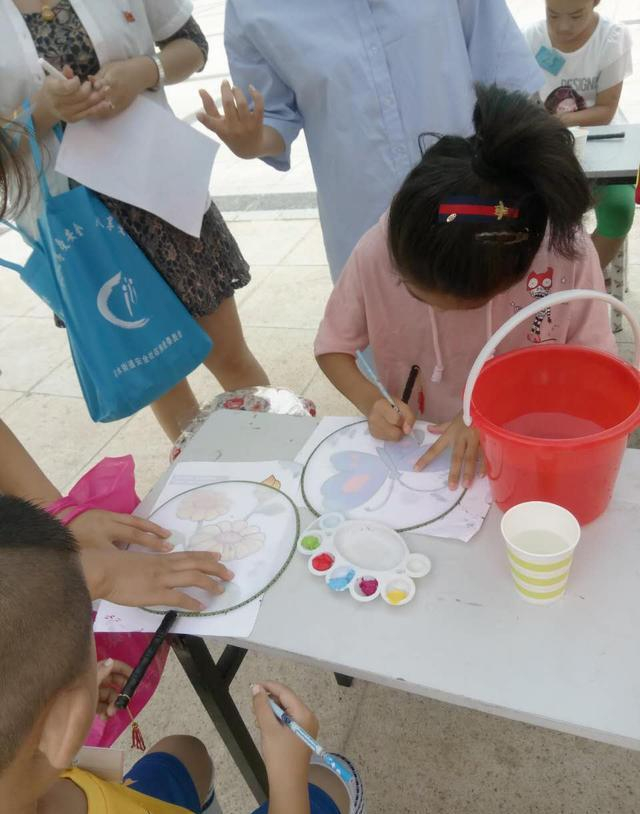 工作人员还为现场的小朋友发了空白扇子,让孩子们舞动想像的翅膀,在扇子上画出美丽的图画,看这些小朋友多么认真多么仔细啊。