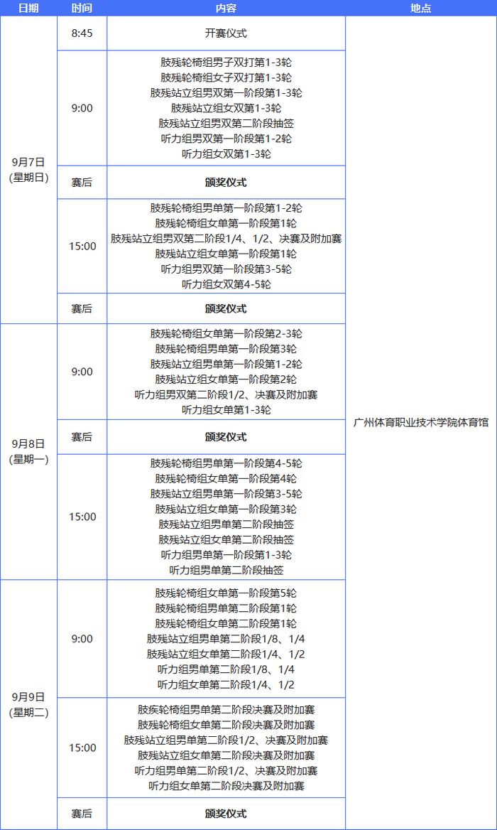 中华人民共和国第十二届残疾人运动会暨第九届特殊奥林匹克运动会乒乓球(大众组)比赛活动日程安排