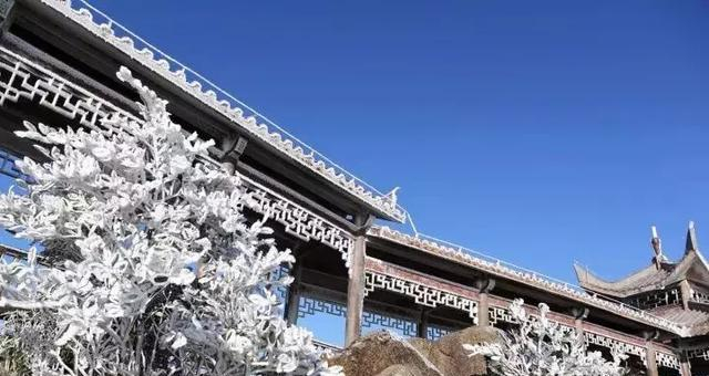 很难想象,冬季的南国山中也会有白雪银妆,雾凇垂玉的一派北国风光,令人流连忘返。