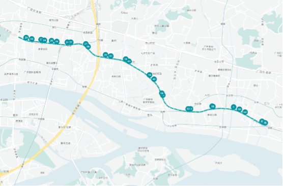双向环线:BRT文园站(地铁双岗站)-BRT乌冲站-BRT下沙站-BRT珠江村站-BRT茅岗站-BRT莲溪站-BRT珠村站-BRT黄村站-BRT东圃镇站-BRT车陂站(地铁车陂站)-BRT天朗明居站-BRT棠东站-BRT棠下村站