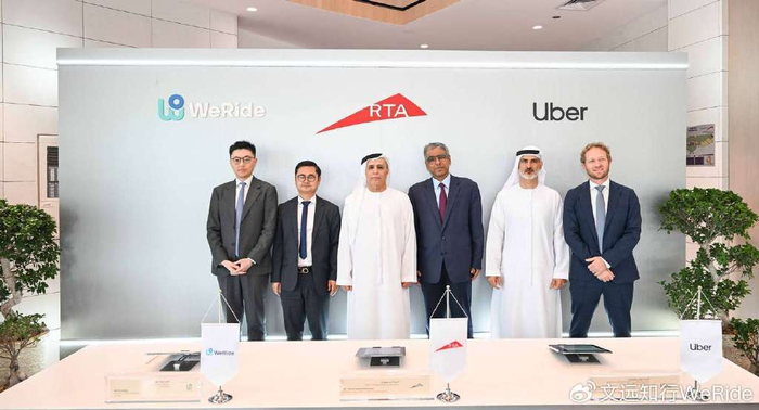 当地时间2025年6月15日,全球领先的自动驾驶科技公司文远知行WeRide(NASDAQ: WRD)与迪拜道路与交通管理局RTA及全球最大的移动出行及配送科技公司优步UberTechnologies, Inc.(NYSE: UBER)签署合作协议。三方将携手在迪拜落地部署商业化Robotaxi出行服务。该服务将于今年内上线Uber平台,首批Robotaxi将进行有安全员的商业运营和纯无人测试,2026年第一季度实现纯无人商业运营。目前,文远知行与Uber已在RTA指导下,在迪拜启动Robotaxi路测工作。