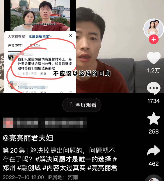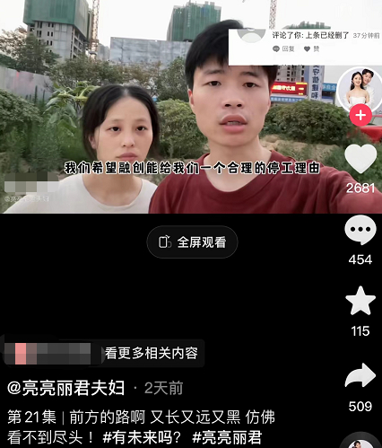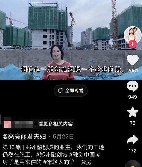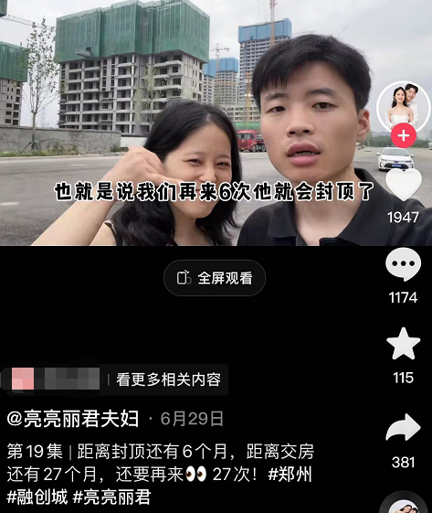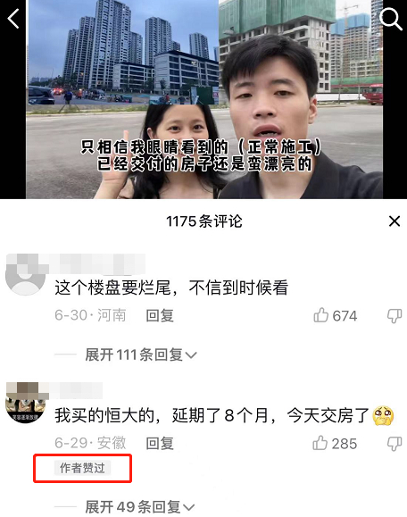 就在这条视频下,有人信誓旦旦地说着“这个楼盘早晚烂尾”,他俩当作没看见。