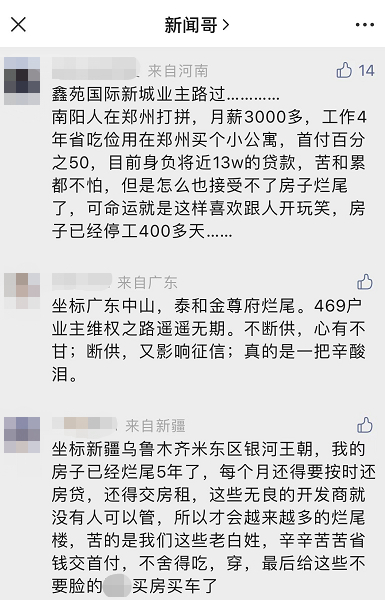 尤其又有疫情,业主们不得不面对收入减少、高额房租房贷、楼盘复工无望等压力。
