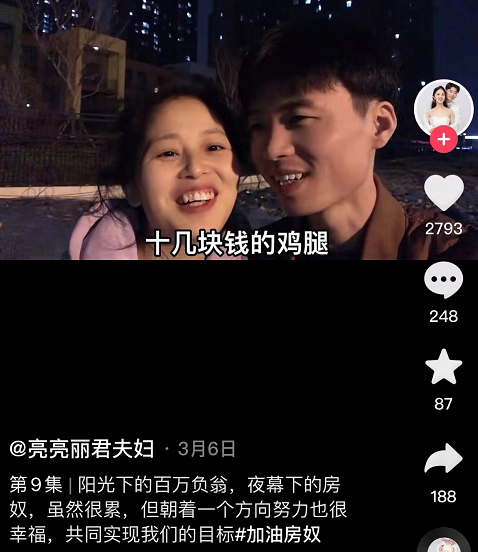 还笑嘻嘻地拍着自嘲小视频:一百万的房子说买就买,十几块的鸡腿犹豫半天。