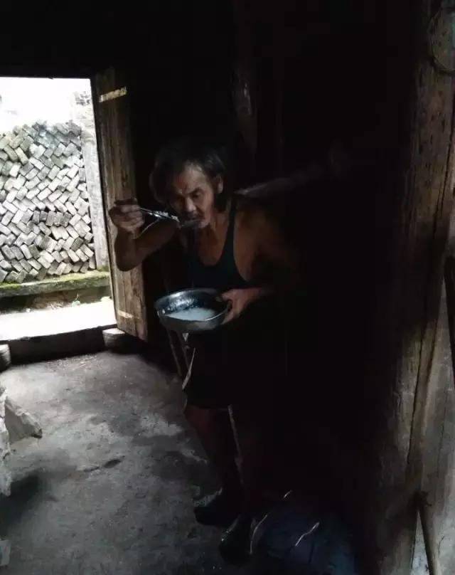 他就住在这样的老房子里,他一年四季只穿这一双鞋,一年从来没生病,从未去过医院治疗过病情……他身体强壮,爱喝粥,爱吃红薯,爱吃韭菜!会砍柴,喜欢砍柴,会种菜,只种韭菜一样!
