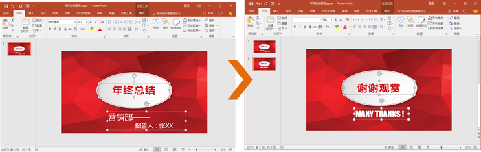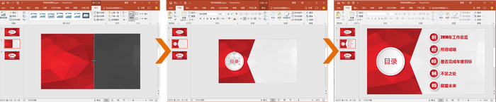 利用年终总结报告各部分的内容框架,可以开始着手设计幻灯片了。