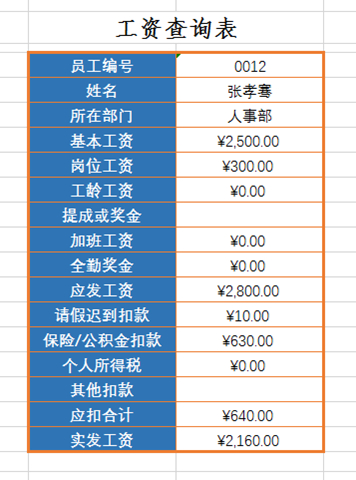 在大多数公司中,工资数据属于比较隐私的部分,一般员工只能查看自己的工资。为方便员工快速查看到自己的工资明细,可以制作一个工资查询表。