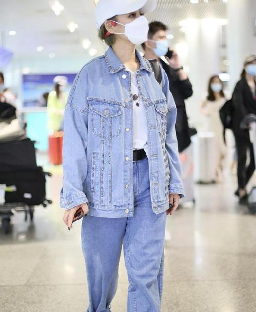 这是一身牛仔搭配,其实还比较日常,不得不说宁静穿这种休闲装真的就是二十多岁的状态,年轻有朝气。可以学习到穿牛仔裤时,将裤脚进行处理,把裤脚扎起来,宁静这是裤子本身带有的绑带设计,也是很有型。